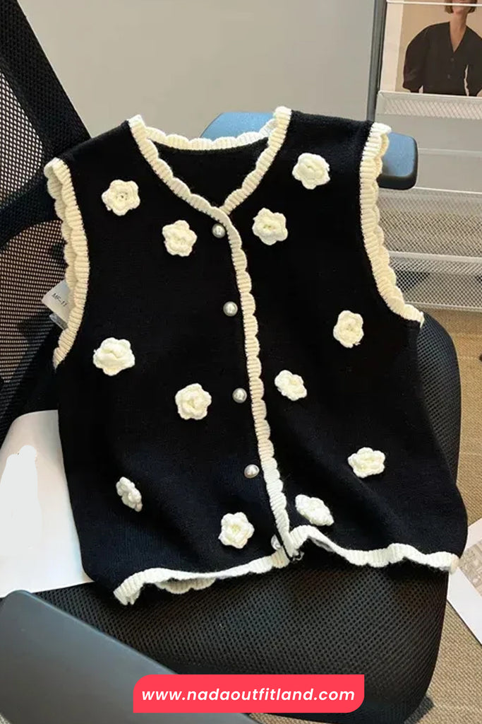 Buy 3D Floral Pattern Sleeveless Vest Sweater from Nada Outfit Land for your outfit of the day. This item is in stock and ready to order. World Wide Shipping Service. Check our Shop for more trendy fashion.