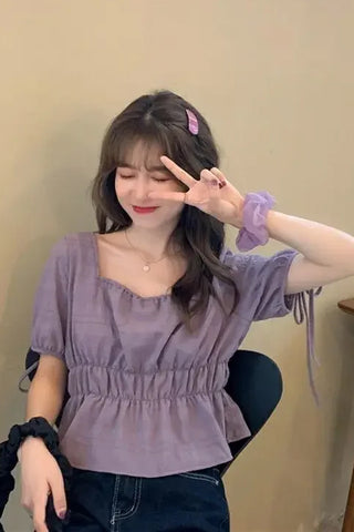 Buy Cute Puff Sleeve Square Collar Cropped Shirt from Tomscloth for your outfit of the day. This item is in stock and ready to order. Enjoy 10% discount with using this code: TOMS_MANIA .
