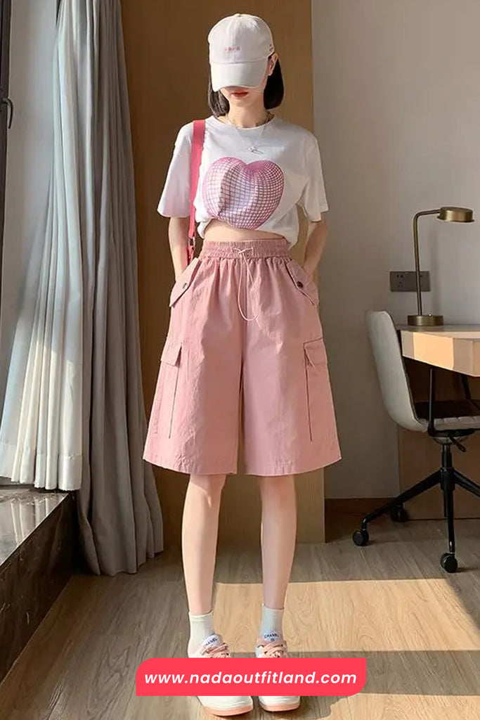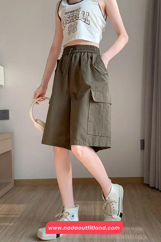 Buy Elastic Waist Cargo Pockets Knee Length Shorts from Nada Outfit Land for your outfit of the day. This item is in stock and ready to order. World Wide Shipping Service. Check our Shop for more trendy fashion.