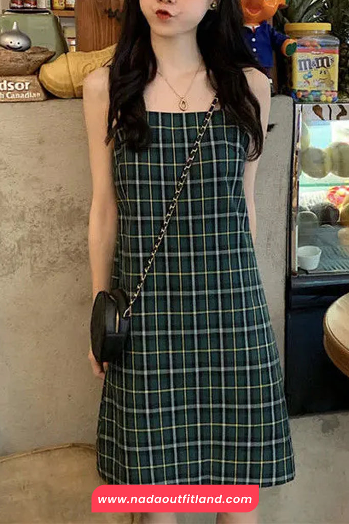 Buy Green Plaid Slash Neck Sleeveless Summer Dress from Nada Outfit Land for your outfit of the day. This item is in stock and ready to order. World Wide Shipping Service. Check our Shop for more trendy fashion.