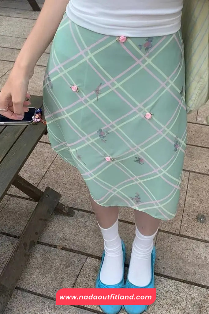 Buy High Waist Argyle Flower Pattern Midi Skirts from Nada Outfit Land for your outfit of the day. This item is in stock and ready to order. World Wide Shipping Service. Check our Shop for more trendy fashion.