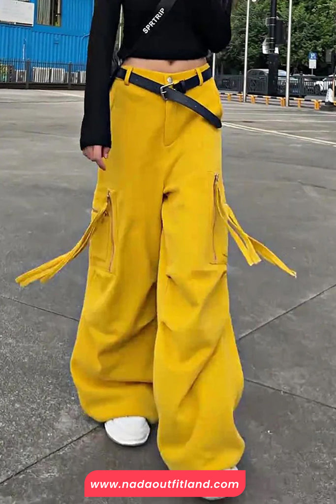 Buy High Waist Cargo Pockets Zipper Wide Leg Pants from Nada Outfit Land for your outfit of the day. This item is in stock and ready to order. World Wide Shipping Service. Check our Shop for more trendy fashion.