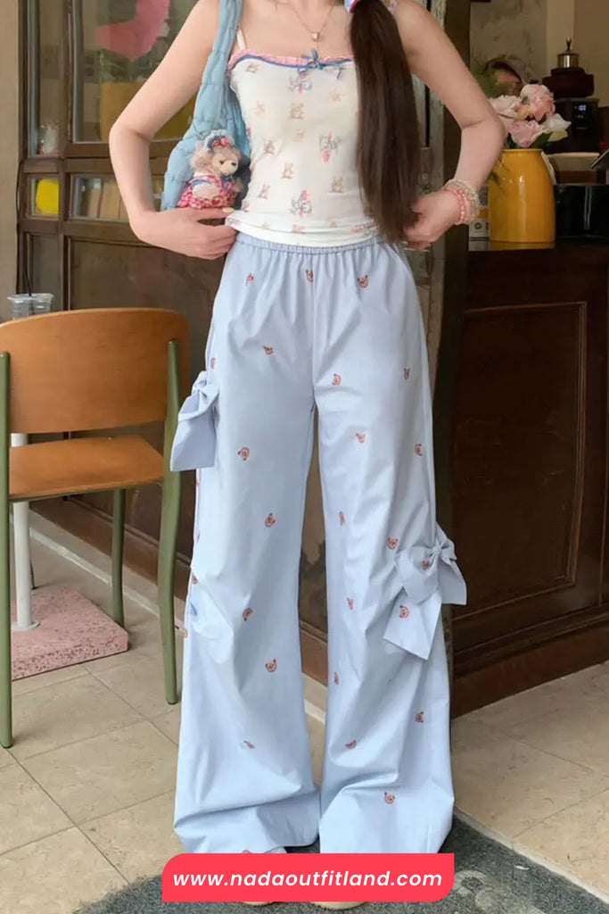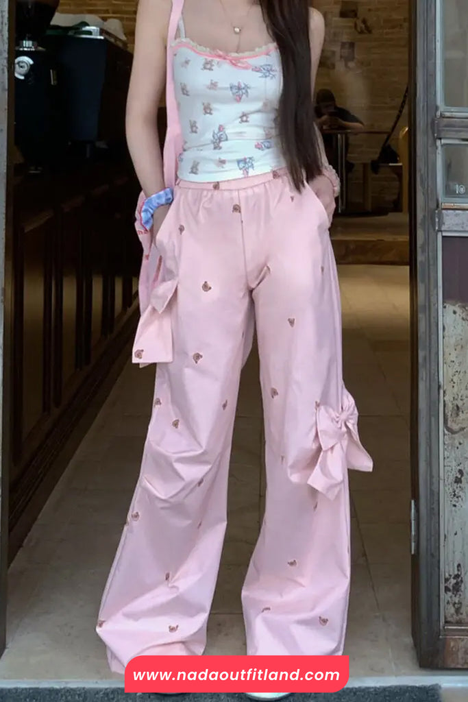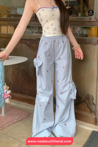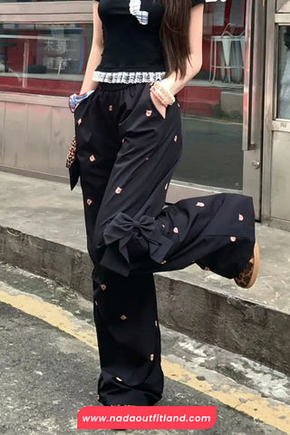 Buy High Waist Cute Side Bow Wide Leg Pants from Nada Outfit Land for your outfit of the day. This item is in stock and ready to order. World Wide Shipping Service. Check our Shop for more trendy fashion.