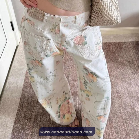 Buy High Waist Front Pockets Floral Pattern White Jeans Pants from Nada Outfit Land for your outfit of the day. This item is in stock and ready to order. World Wide Shipping Service. Check our Shop for more trendy fashion.