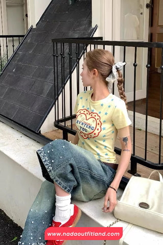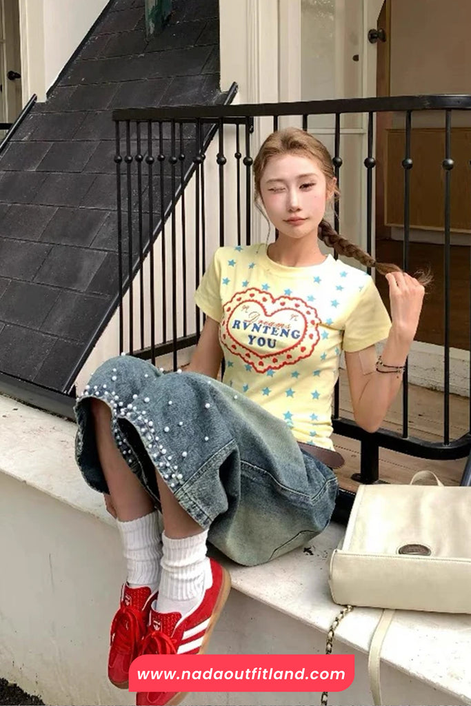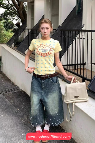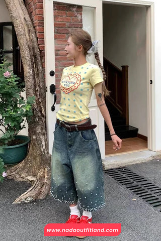 Buy High Waist Knee Length Pearls Beading Jeans Pants from Nada Outfit Land for your outfit of the day. This item is in stock and ready to order. World Wide Shipping Service. Check our Shop for more trendy fashion.