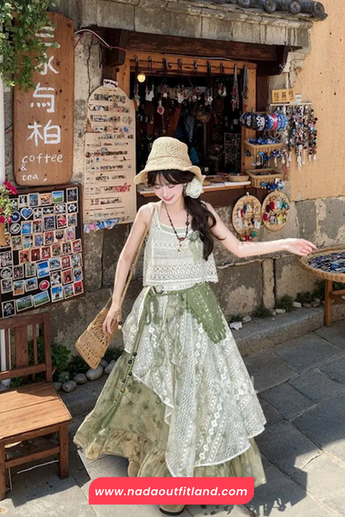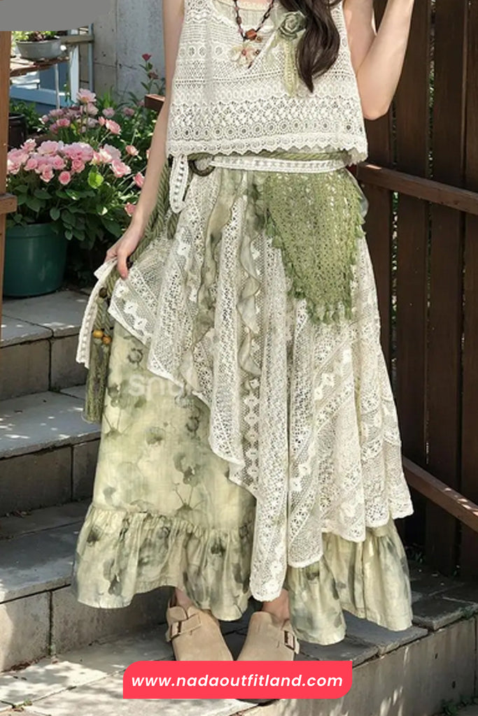 Buy High Waist Lace Patchwork Green Tie Dye Irregular Long Skirts from Nada Outfit Land for your outfit of the day. This item is in stock and ready to order. World Wide Shipping Service. Check our Shop for more trendy fashion.