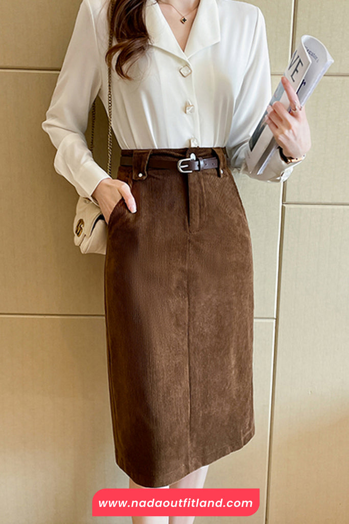 Buy High Waist Long Corduroy Pencil Skirts from Nada Outfit Land for your outfit of the day. This item is in stock and ready to order. World Wide Shipping Service. Check our Shop for more trendy fashion.