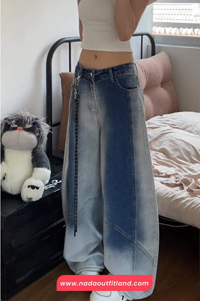 Buy High Waist Loose Dark Blue Gradient Jeans Pants from Nada Outfit Land for your outfit of the day. This item is in stock and ready to order. World Wide Shipping Service. Check our Shop for more trendy fashion.