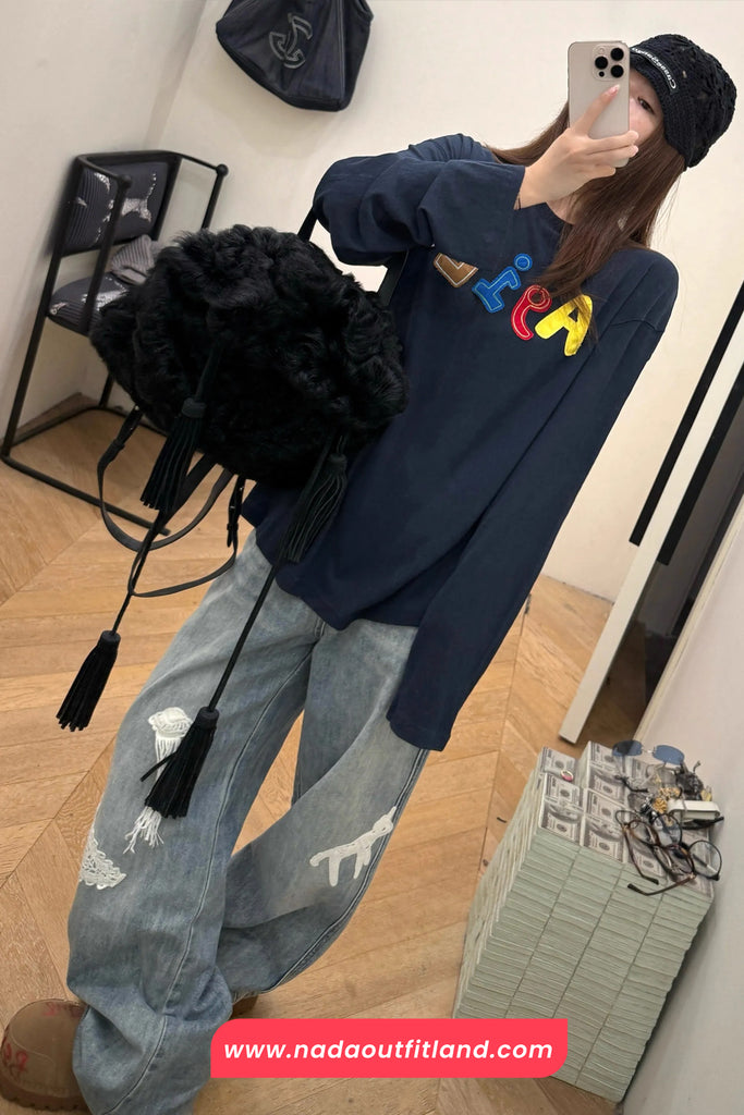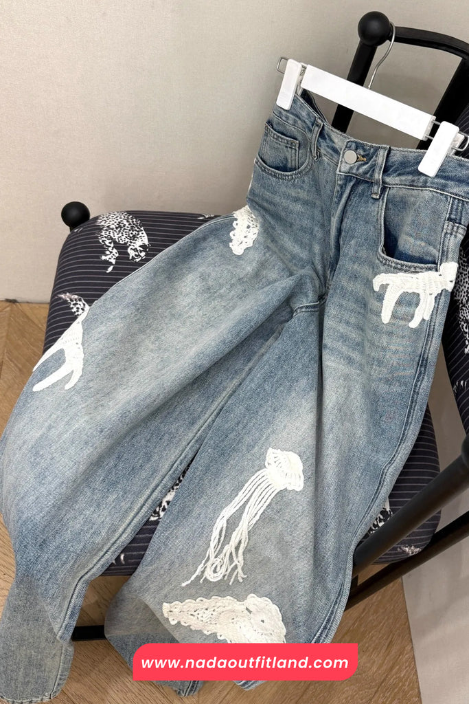 Buy High Waist Loose Vintage Lace Embroidered Jeans Pants from Nada Outfit Land for your outfit of the day. This item is in stock and ready to order. World Wide Shipping Service. Check our Shop for more trendy fashion.