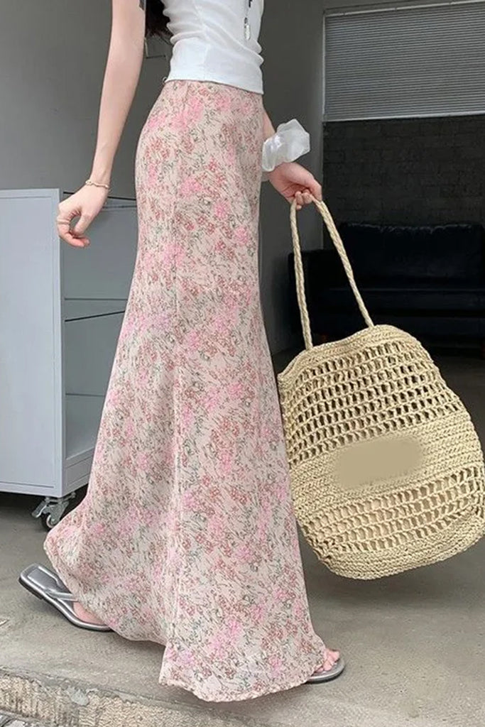 Step into a dream of blossoming elegance with our High Waist Pink Floral Long Mermaid Skirt. Designed to celebrate the feminine form, this skirt features a breathtaking mermaid silhouette—fitted through the waist and hips before flaring out into a dramatic, voluminous hem that moves like a gentle wave. The vibrant pink floral pattern adds a touch of whimsical romance, making it the ultimate statement piece for your soft girl or cottagecore summer wardrobe.