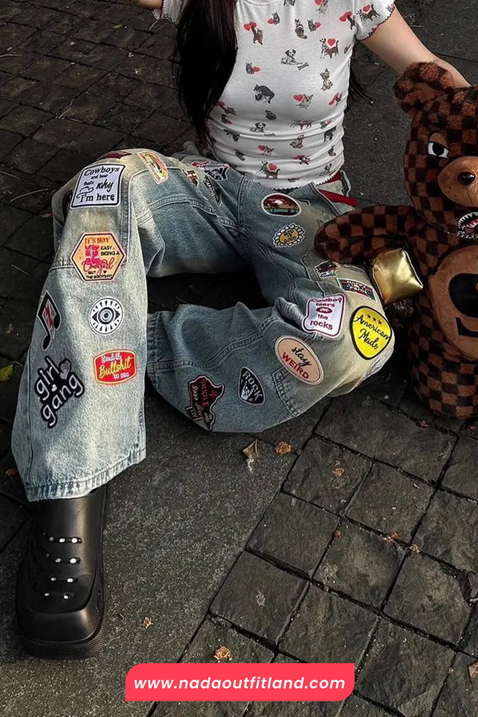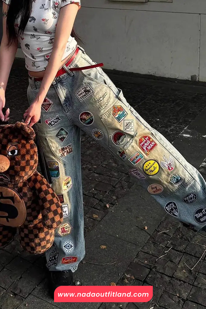 Buy High Waist Retro Embroidered Jeans Pants from Nada Outfit Land for your outfit of the day. This item is in stock and ready to order. World Wide Shipping Service. Check our Shop for more trendy fashion.