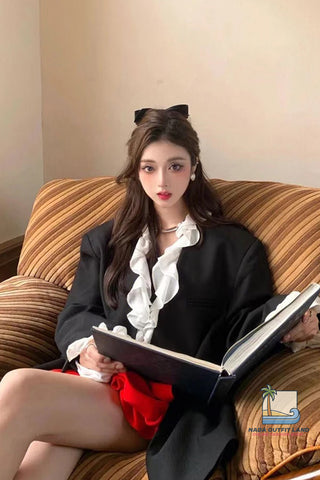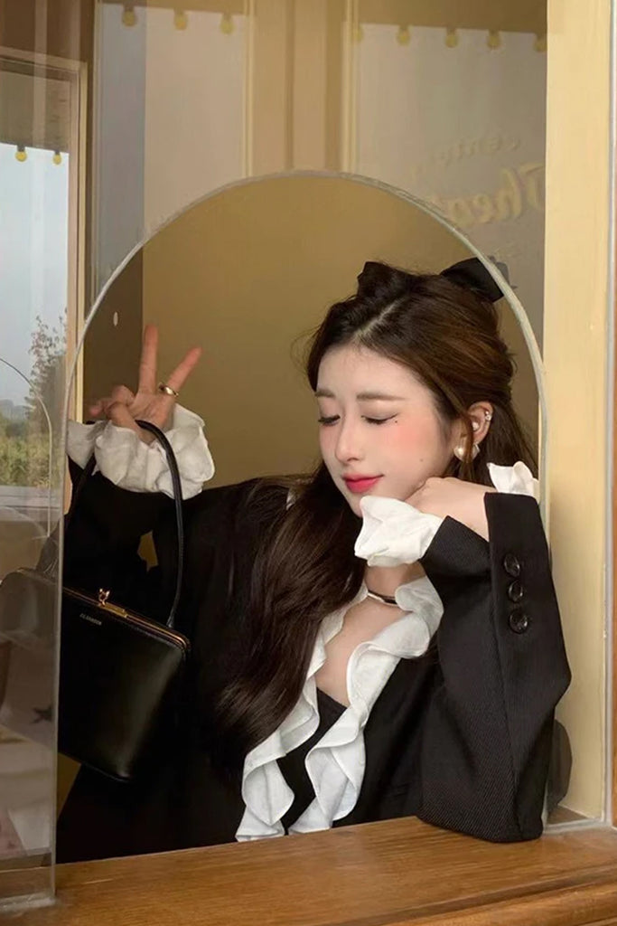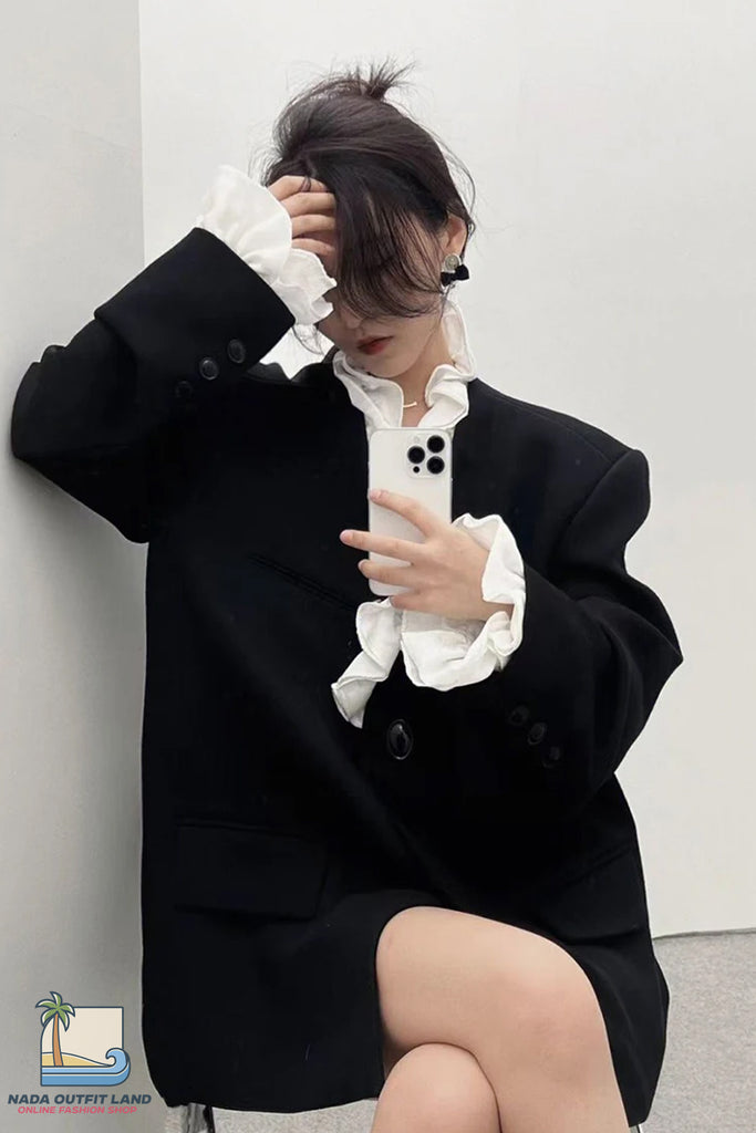 Buy Long Sleeve Black Elegant Ruffle Patchwork Blazer Jacket from Nada Outfit Land for your outfit of the day. This item is in stock and ready to order. World Wide Shipping Service. Check our Shop for more trendy fashion.