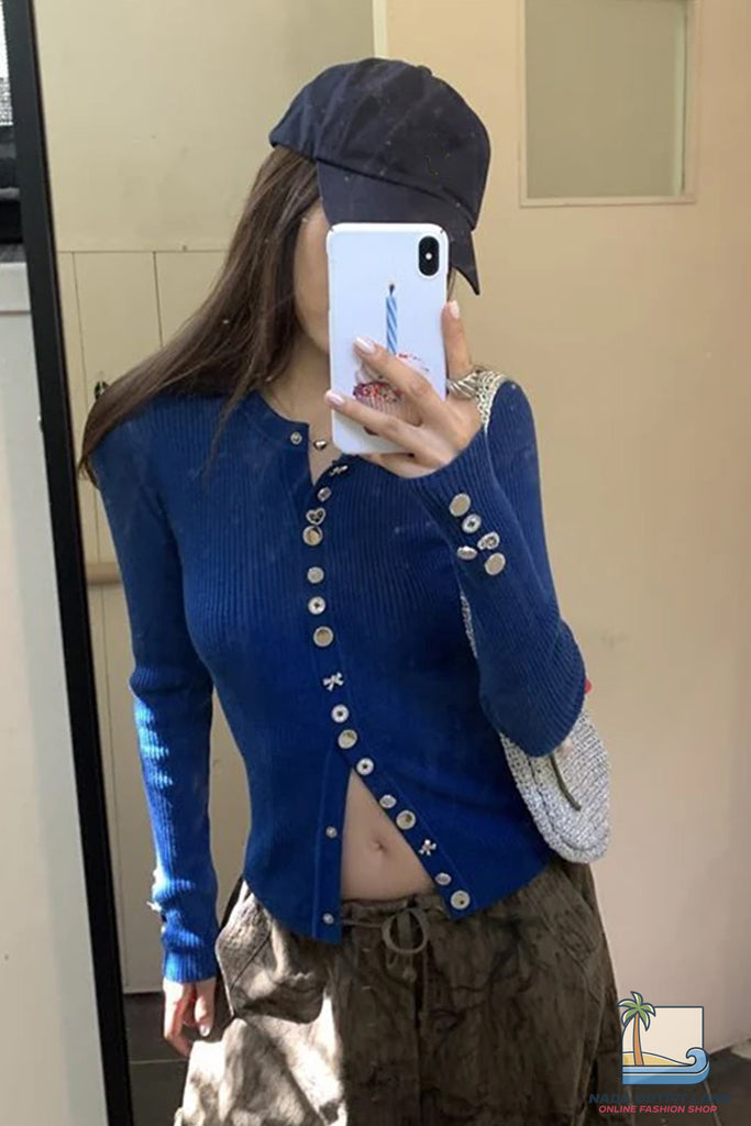Buy Long Sleeve Chic Buttons Slim Fit Knitted Cardigan Sweater from Nada Outfit Land for your outfit of the day. This item is in stock and ready to order. World Wide Shipping Service. Check our Shop for more trendy fashion.
