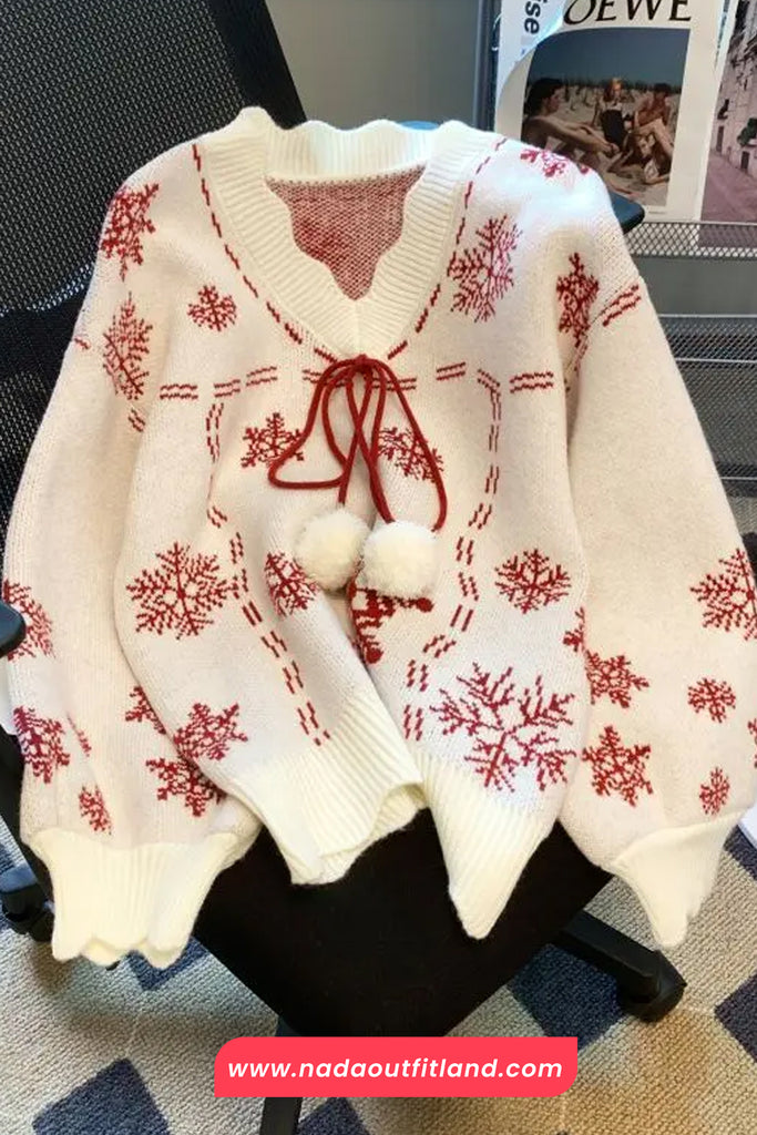 Buy Long Sleeve Christmas Theme Pattern V-Neck Sweater from Nada Outfit Land for your outfit of the day. This item is in stock and ready to order. World Wide Shipping Service. Check our Shop for more trendy fashion.