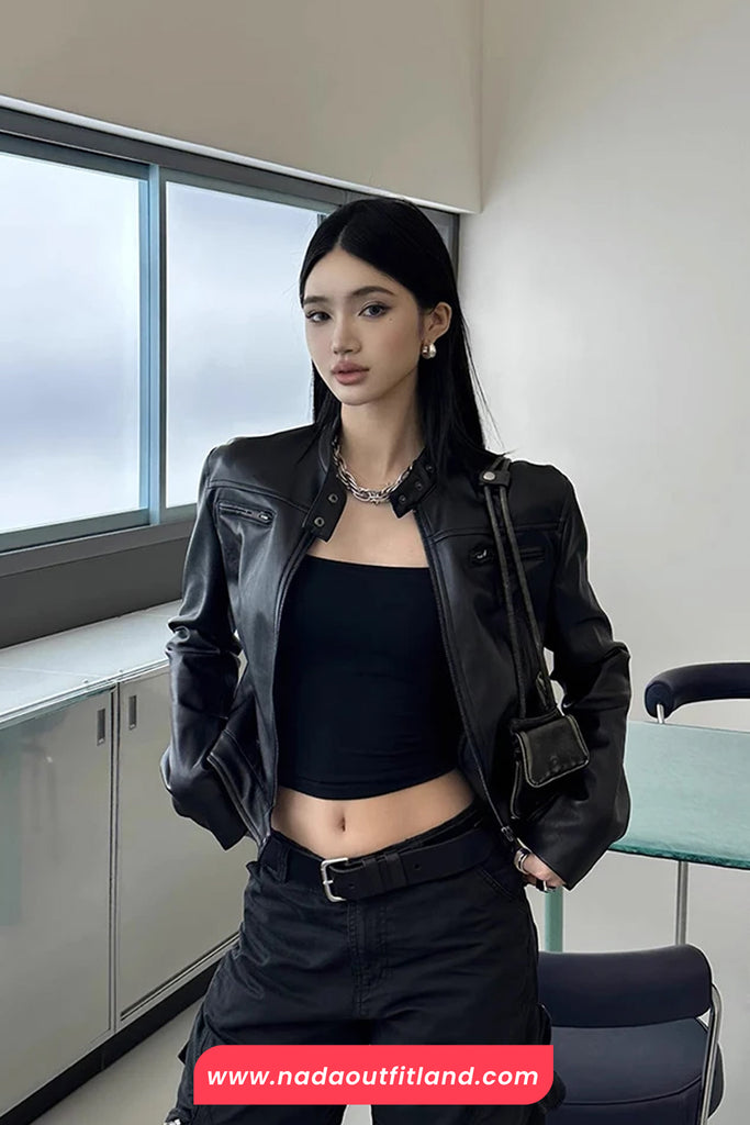 Buy Long Sleeve Cropped Leather Black Jacket from Nada Outfit Land for your outfit of the day. This item is in stock and ready to order. World Wide Shipping Service. Check our Shop for more trendy fashion.