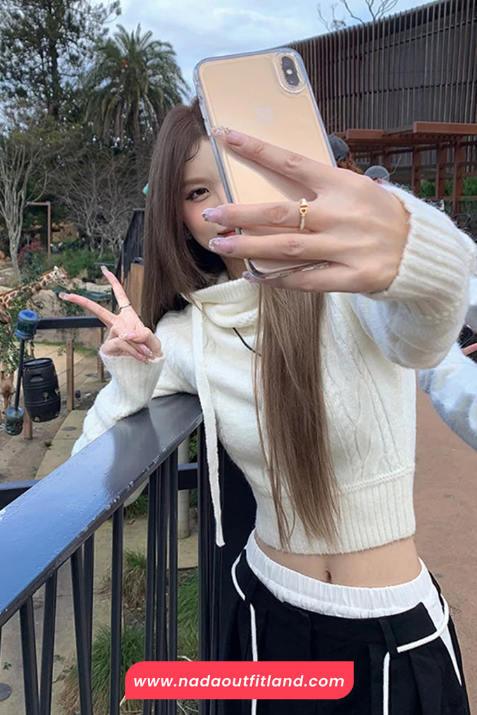 Buy Long Sleeve Cropped Style Hooded Knitted Sweater from Nada Outfit Land for your outfit of the day. This item is in stock and ready to order. World Wide Shipping Service. Check our Shop for more trendy fashion.