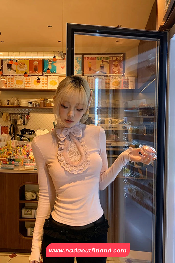Buy Long Sleeve Cute Bow Design Lace Shirt from Nada Outfit Land for your outfit of the day. This item is in stock and ready to order. World Wide Shipping Service. Check our Shop for more trendy fashion.