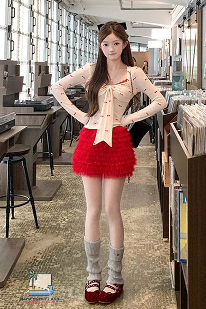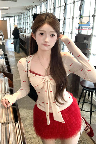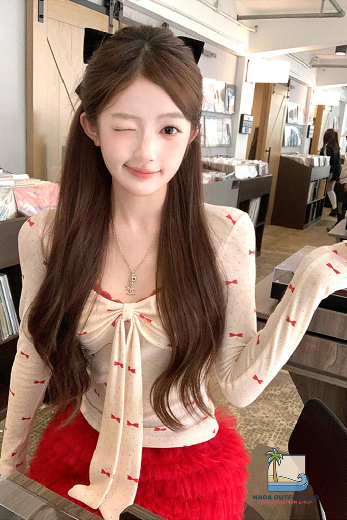 Buy Long Sleeve Cute Bow Pattern Lace Cropped Shirt from Nada Outfit Land for your outfit of the day. This item is in stock and ready to order. World Wide Shipping Service. Check our Shop for more trendy fashion.
