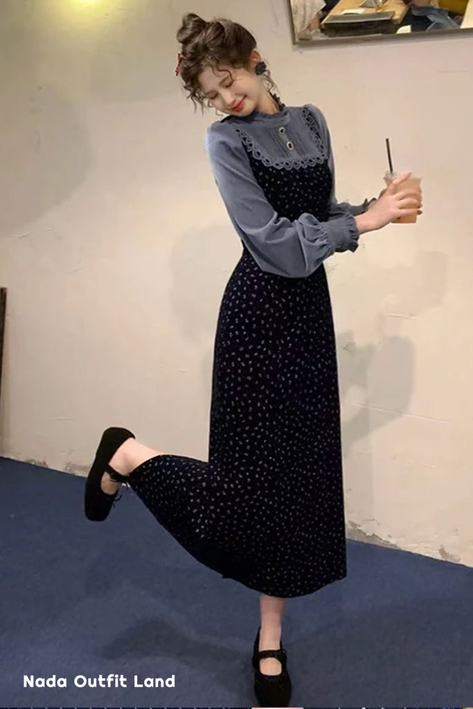 Buy Long Sleeve Elegant Floral Pattern Retro Long Dress from Nada Outfit Land for your outfit of the day. This item is in stock and ready to order. World Wide Shipping Service. Check our Shop for more trendy fashion.