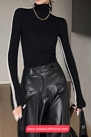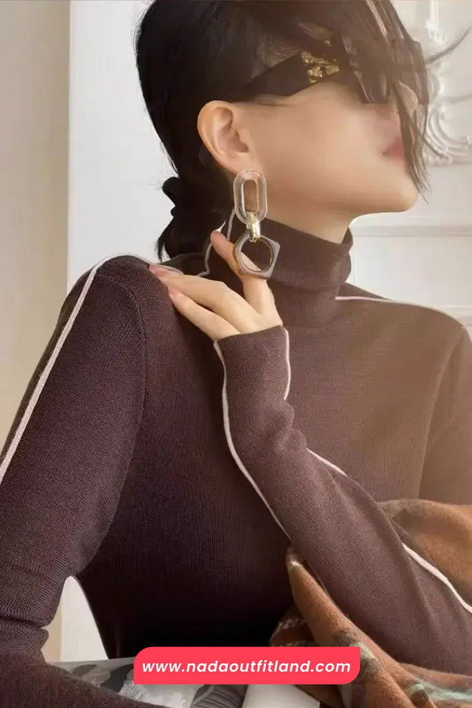 Buy Long Sleeve Elegant Striped Turtleneck Slim Sweater from Nada Outfit Land for your outfit of the day. This item is in stock and ready to order. World Wide Shipping Service. Check our Shop for more trendy fashion.