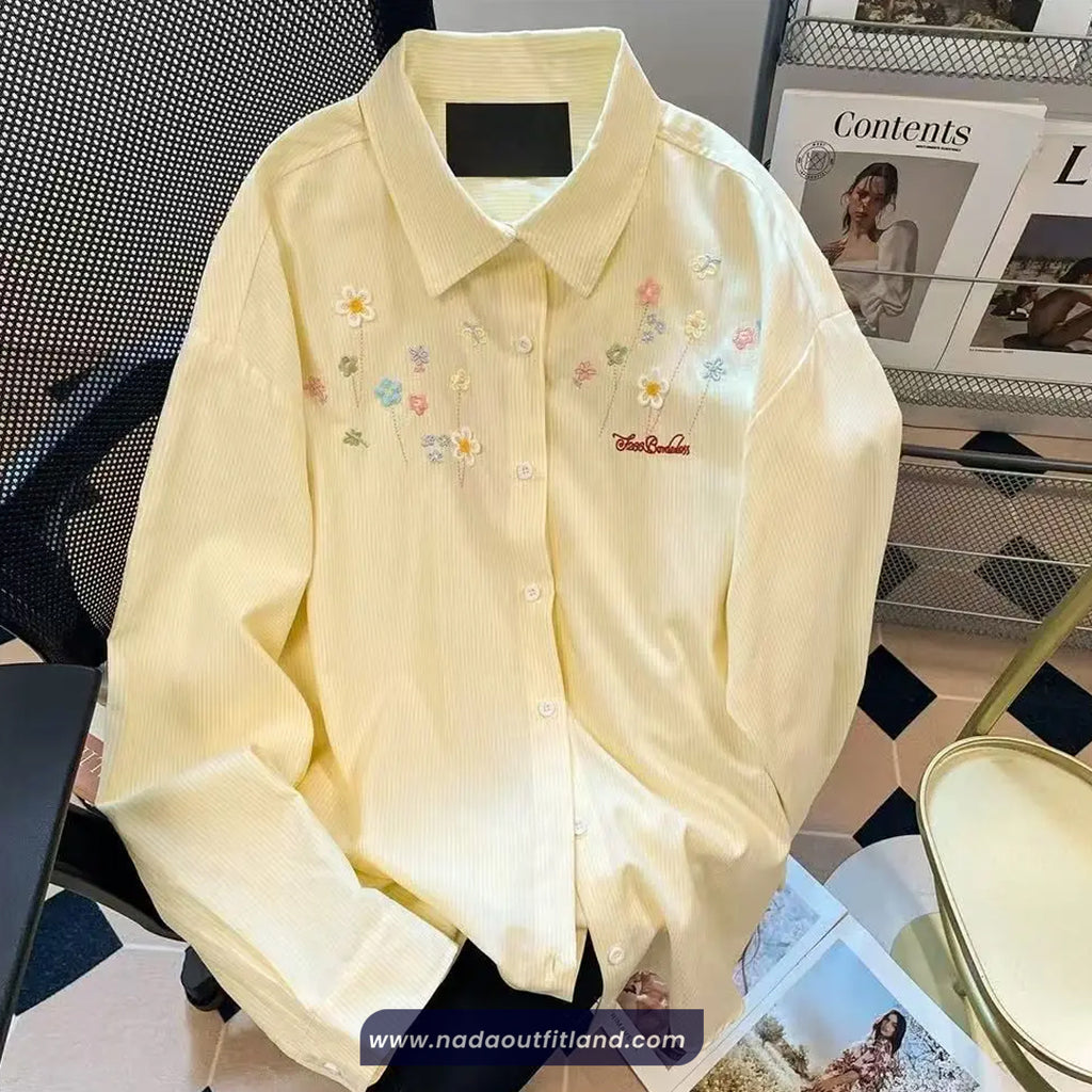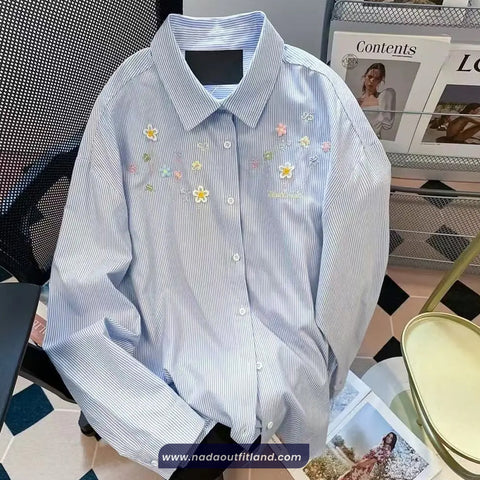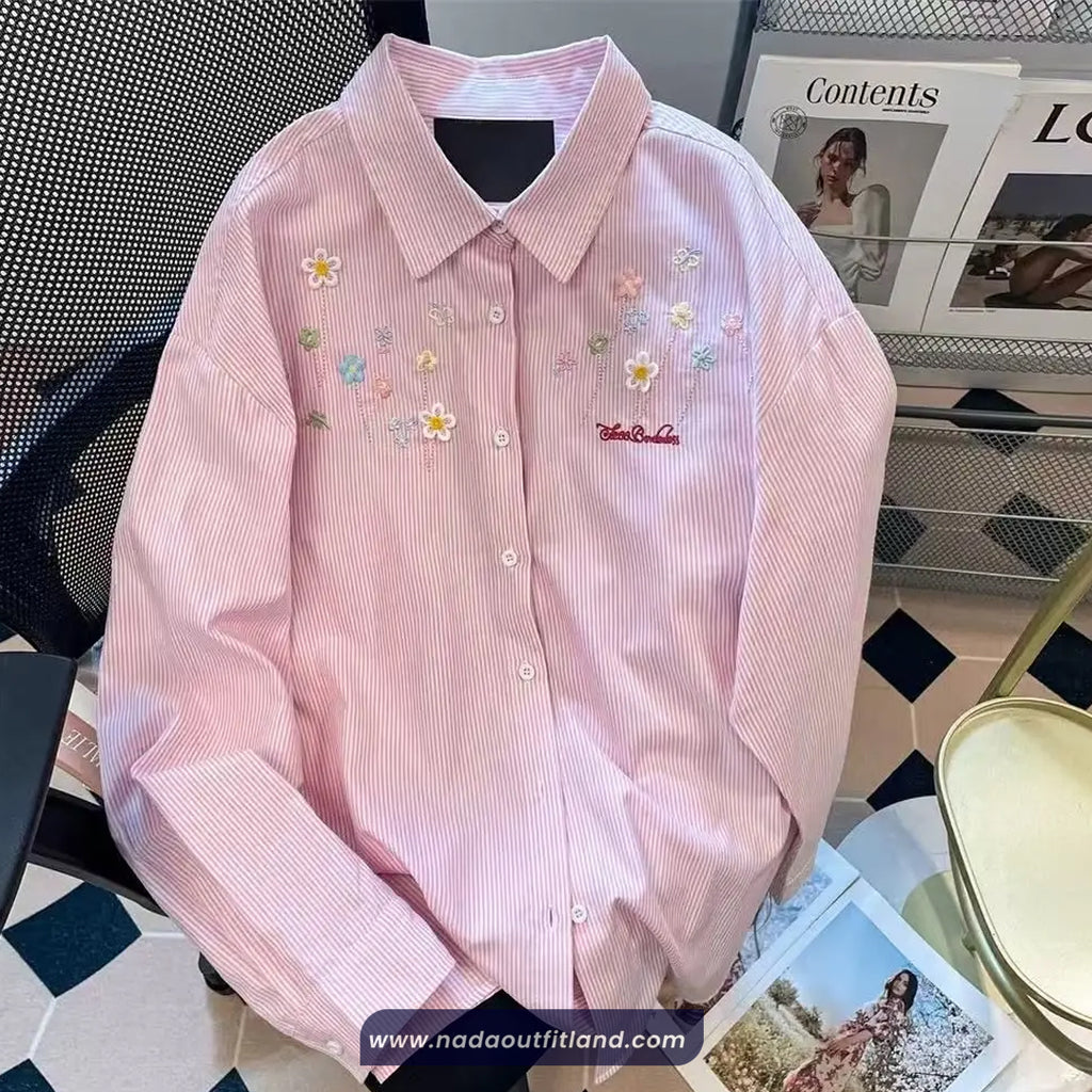 Buy Long Sleeve Flowers Embroidered Striped Blouse Shirt from Nada Outfit Land for your outfit of the day. This item is in stock and ready to order. World Wide Shipping Service. Check our Shop for more trendy fashion.