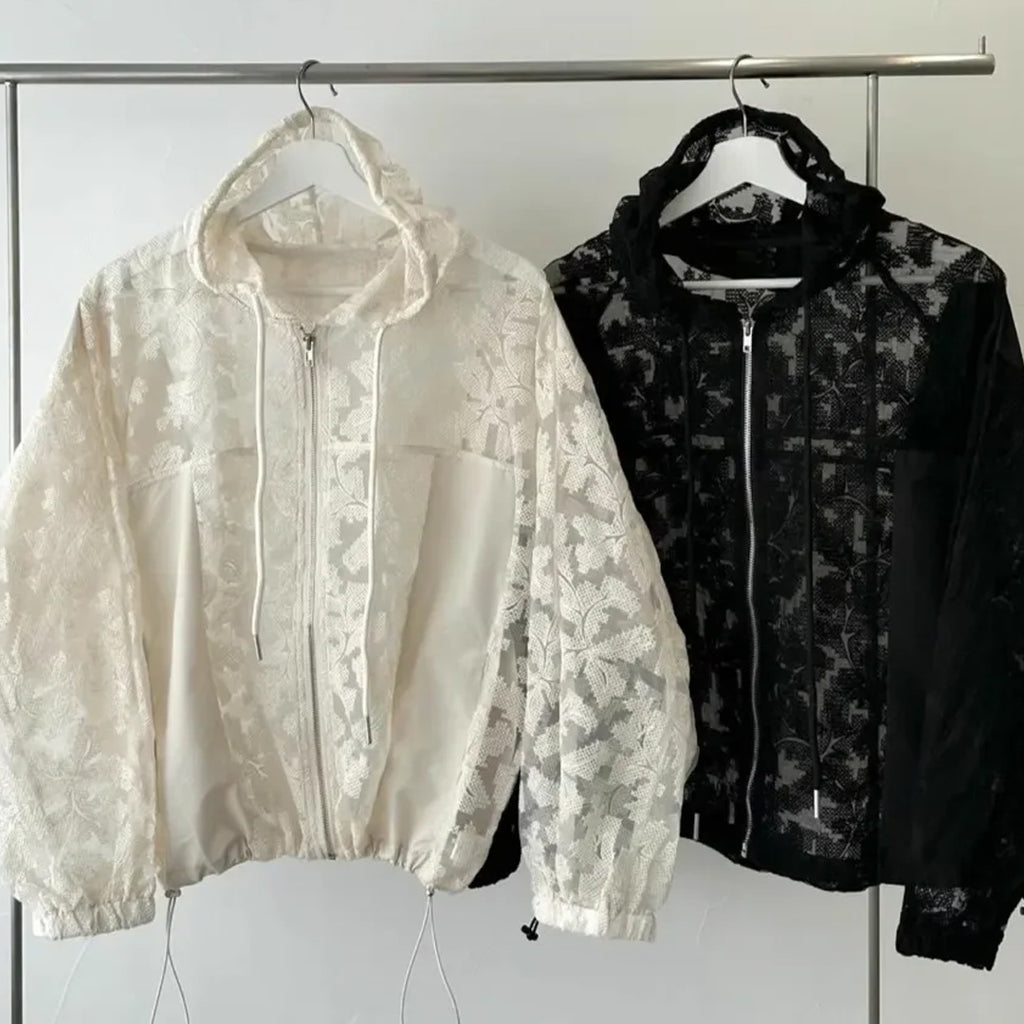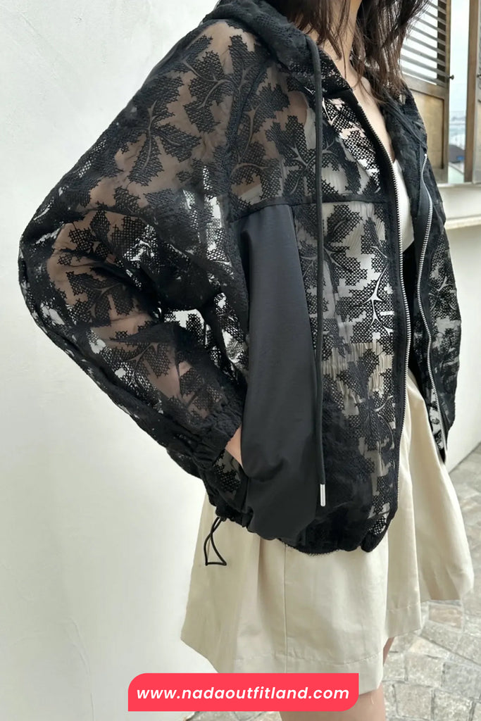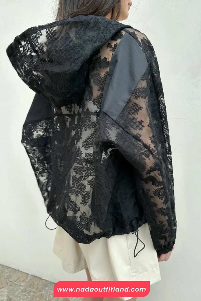Buy Long Sleeve Lace Hooded Transparent Jacket from Nada Outfit Land for your outfit of the day. This item is in stock and ready to order. World Wide Shipping Service. Check our Shop for more trendy fashion.
