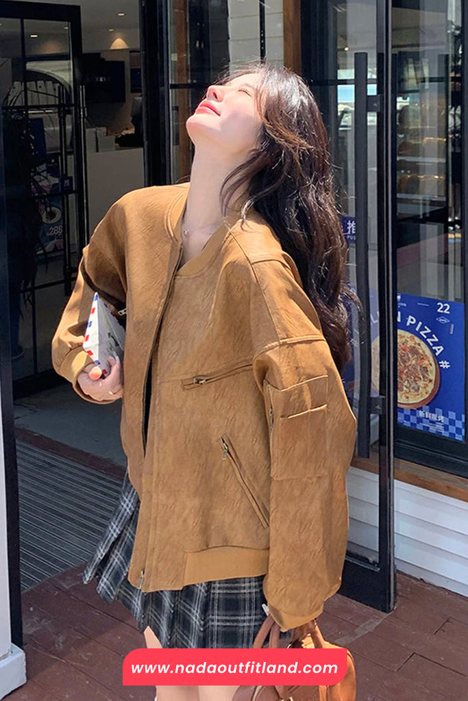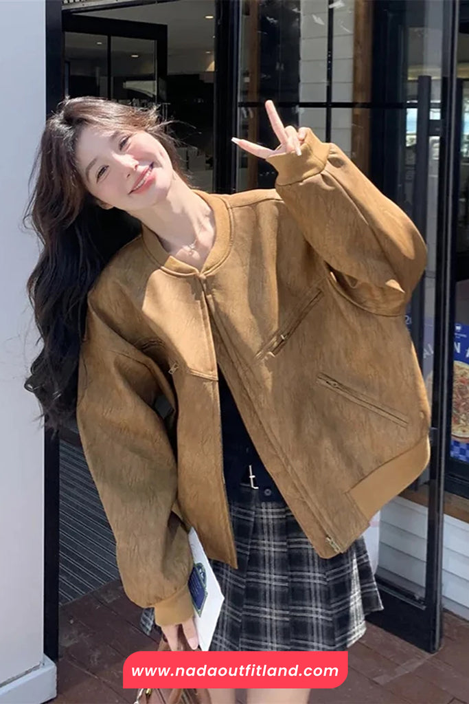 Buy Long Sleeve O-Neck Faux Suede Zipper Jacket from Nada Outfit Land for your outfit of the day. This item is in stock and ready to order. World Wide Shipping Service. Check our Shop for more trendy fashion.