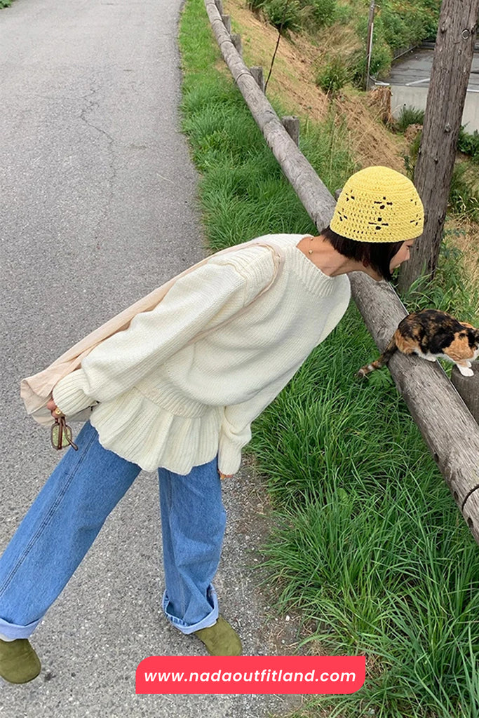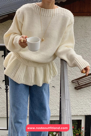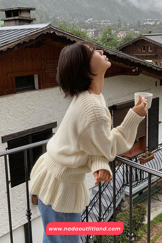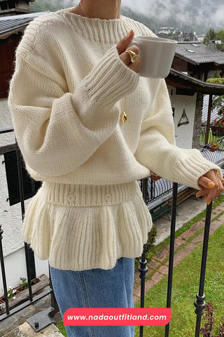 Buy Long Sleeve O-Neck Ruffles Patchwork Knitted Sweater from Nada Outfit Land for your outfit of the day. This item is in stock and ready to order. World Wide Shipping Service. Check our Shop for more trendy fashion.