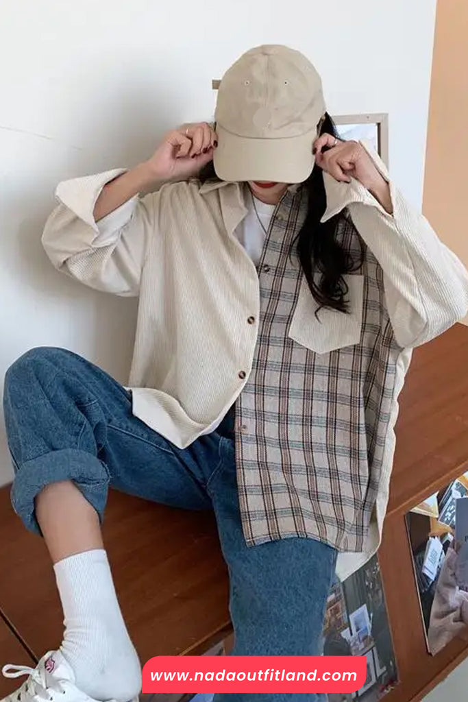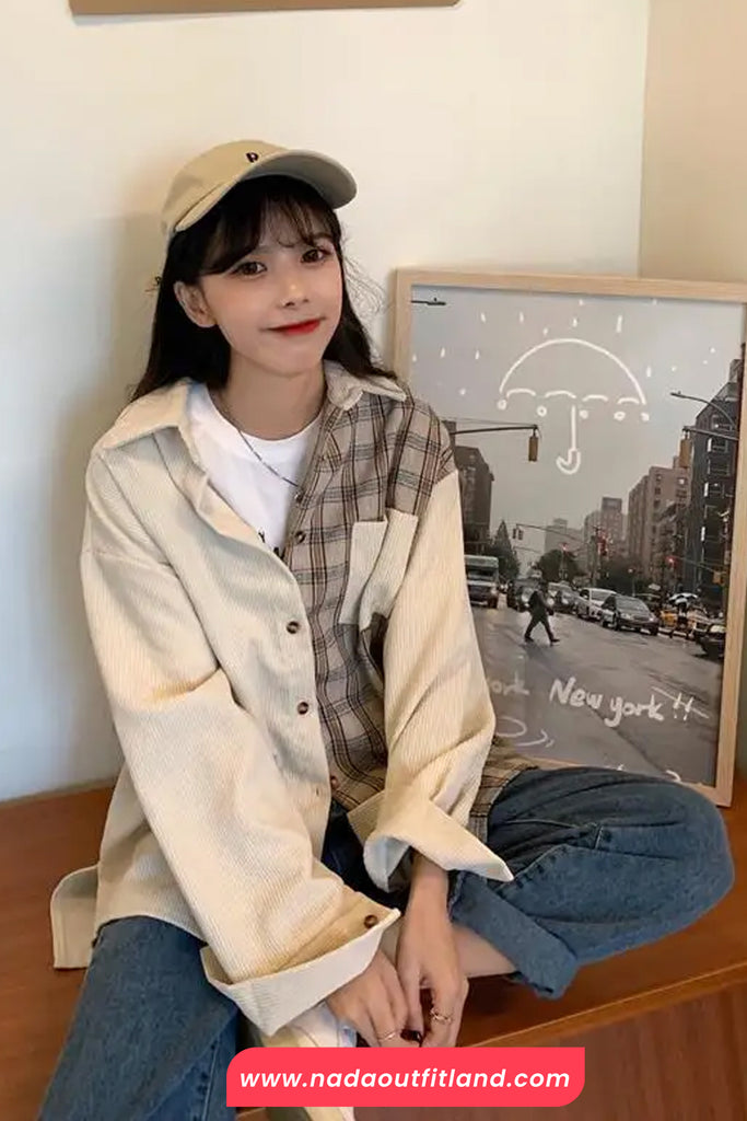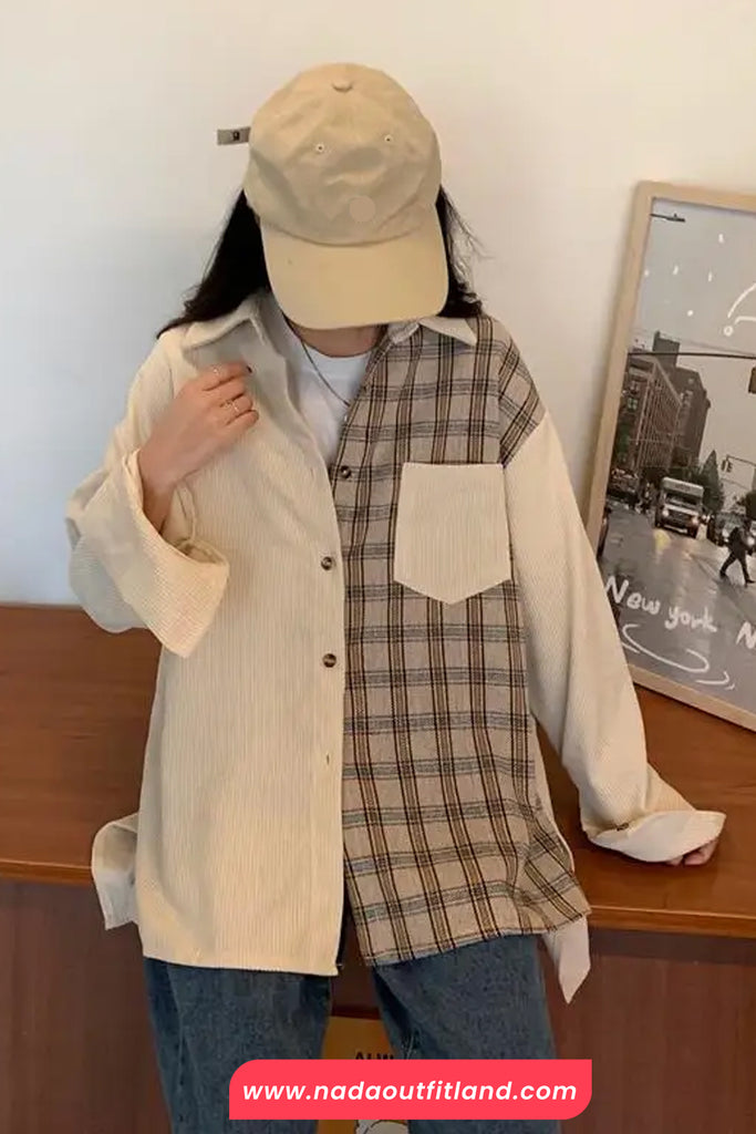 Buy Long Sleeve Plaid Patchwork Corduroy Blouse Shirt from Nada Outfit Land for your outfit of the day. This item is in stock and ready to order. World Wide Shipping Service. Check our Shop for more trendy fashion.