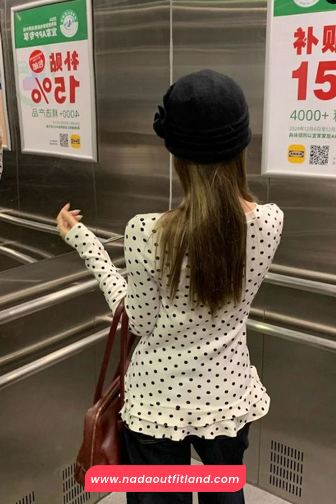 Buy Long Sleeve Polka Dot Pattern Ruffle Shirt from Nada Outfit Land for your outfit of the day. This item is in stock and ready to order. World Wide Shipping Service. Check our Shop for more trendy fashion.