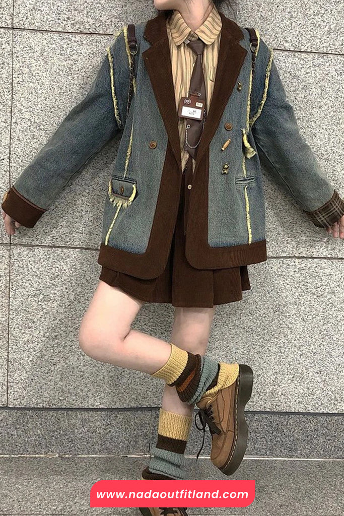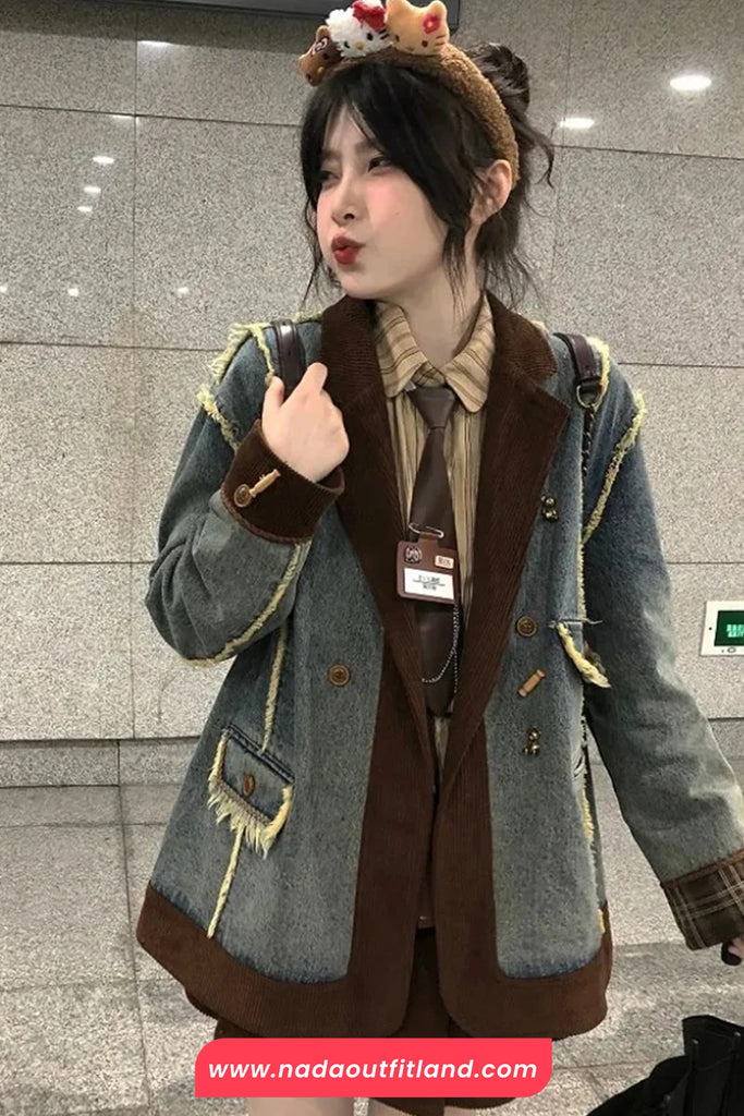 Buy Long Sleeve Retro Corduroy Patchwork Denim Coat Jacket from Nada Outfit Land for your outfit of the day. This item is in stock and ready to order. World Wide Shipping Service. Check our Shop for more trendy fashion.