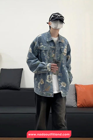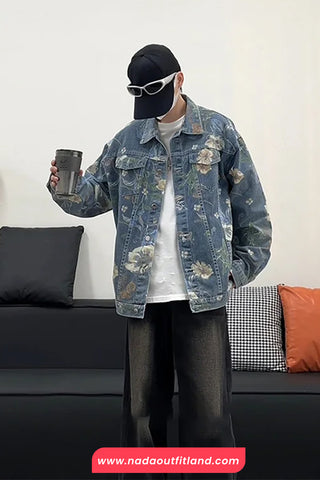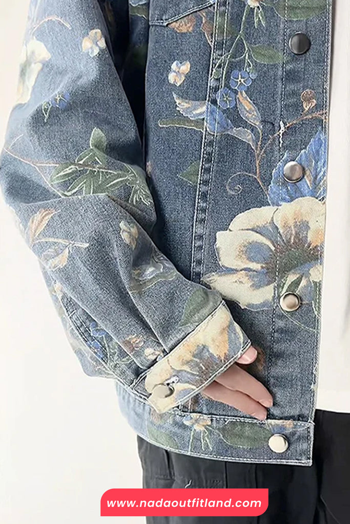 Buy Long Sleeve Retro Flowers Pattern Denim Jeans Jacket from Nada Outfit Land for your outfit of the day. This item is in stock and ready to order. World Wide Shipping Service. Check our Shop for more trendy fashion.