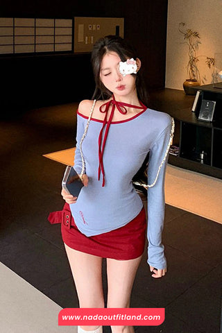 Buy Long Sleeve Sexy Skew Collar Irregular Crop Tops from Nada Outfit Land for your outfit of the day. This item is in stock and ready to order. World Wide Shipping Service. Check our Shop for more trendy fashion.
