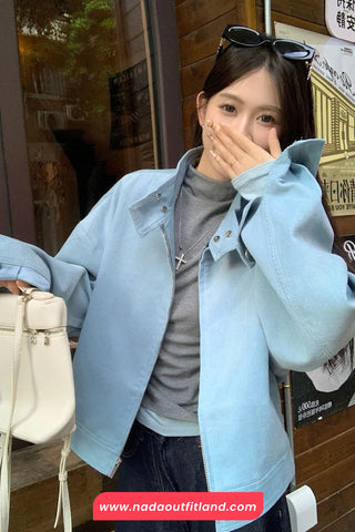 Buy Long Sleeve Stand Collar Simple Blue Zipper Jacket from Nada Outfit Land for your outfit of the day. This item is in stock and ready to order. World Wide Shipping Service. Check our Shop for more trendy fashion.