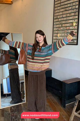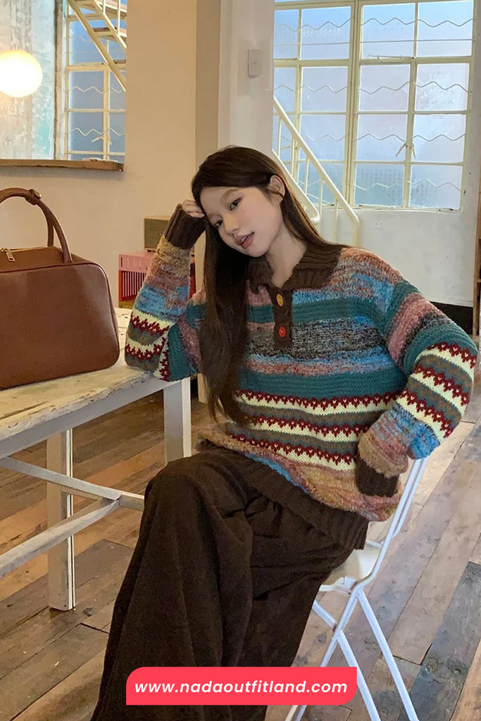 Buy Long Sleeve Turn Down Collar Retro Pattern Sweater from Nada Outfit Land for your outfit of the day. This item is in stock and ready to order. World Wide Shipping Service. Check our Shop for more trendy fashion.
