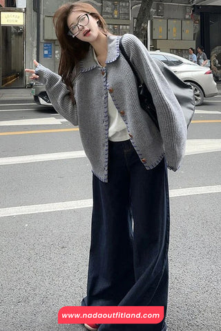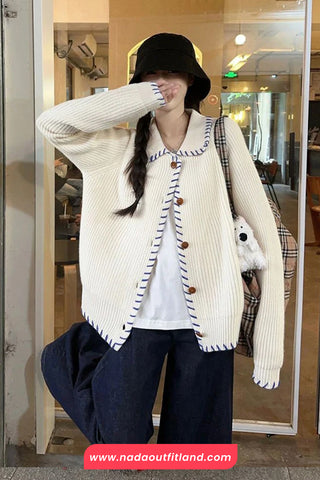 Buy Long Sleeve Turn Down Collar Striped Cardigan Sweater from Nada Outfit Land for your outfit of the day. This item is in stock and ready to order. World Wide Shipping Service. Check our Shop for more trendy fashion.