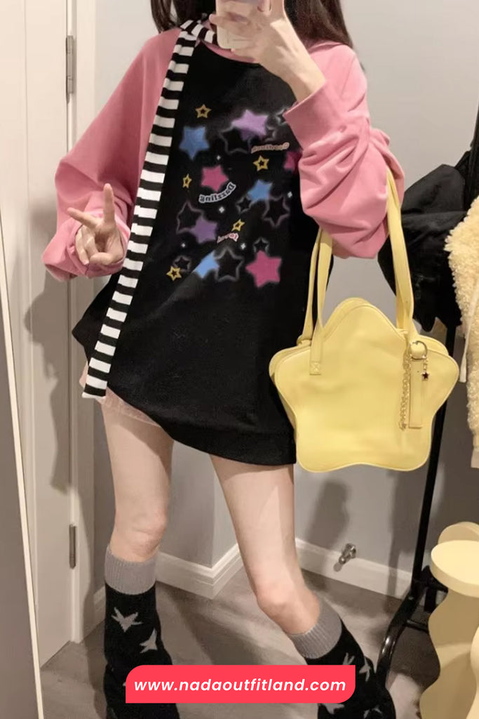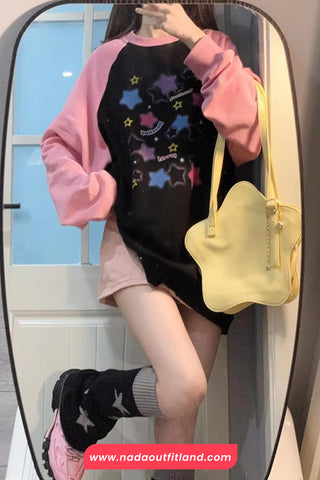 Buy Long Sleeve Two Colors Stars Pattern Sweatshirt from Nada Outfit Land for your outfit of the day. This item is in stock and ready to order. World Wide Shipping Service. Check our Shop for more trendy fashion.