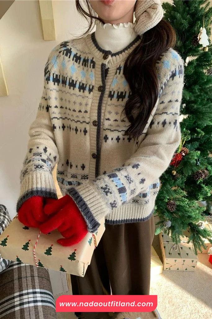 Buy Long Sleeve Vintage Christmas Casual Cardigan Sweater from Nada Outfit Land for your outfit of the day. This item is in stock and ready to order. World Wide Shipping Service. Check our Shop for more trendy fashion.