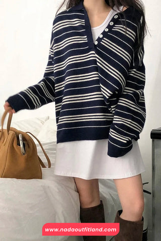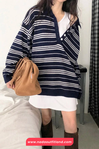 Buy Long Sleeve Vintage Knitted Striped Button Sweater from Nada Outfit Land for your outfit of the day. This item is in stock and ready to order. World Wide Shipping Service. Check our Shop for more trendy fashion.