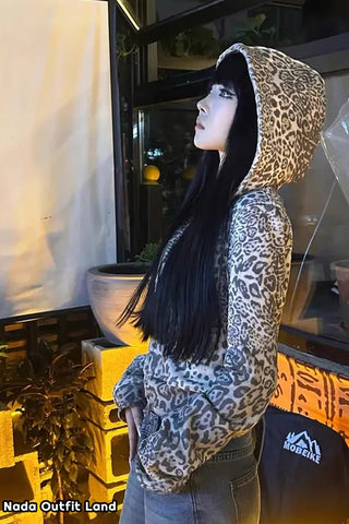 Buy Long Sleeve Vintage Leopard Pattern Cropped Hooded Sweatshirt from Nada Outfit Land for your outfit of the day. This item is in stock and ready to order. World Wide Shipping Service. Check our Shop for more trendy fashion.