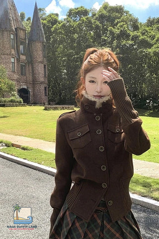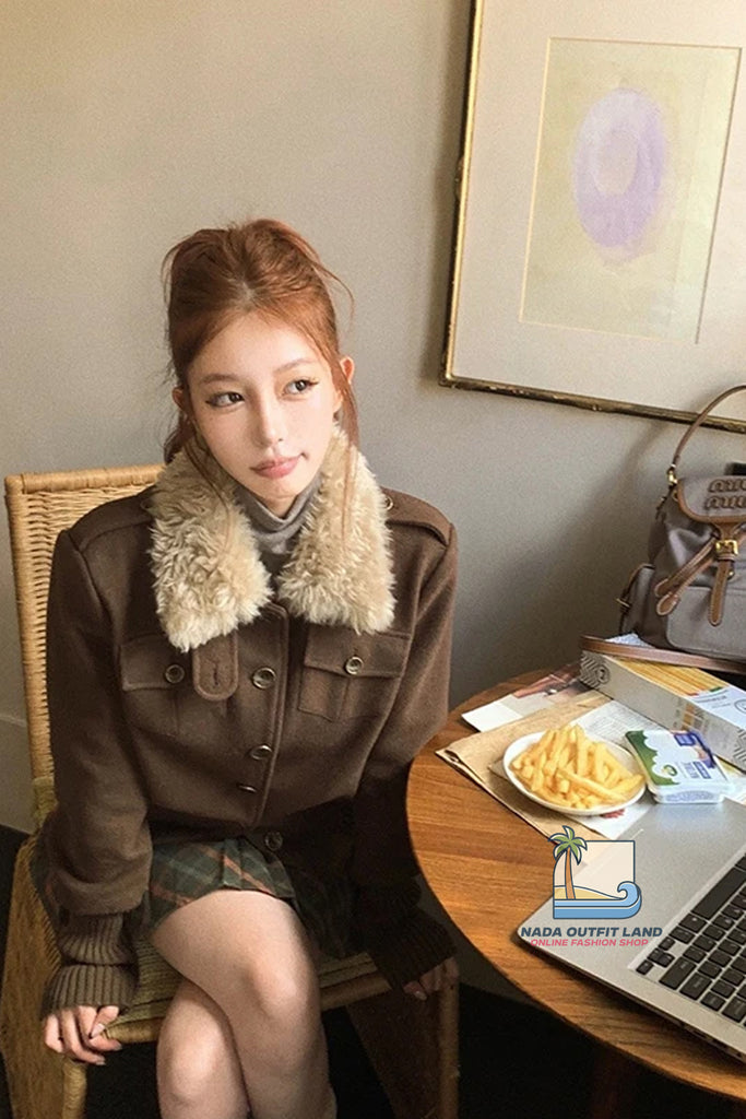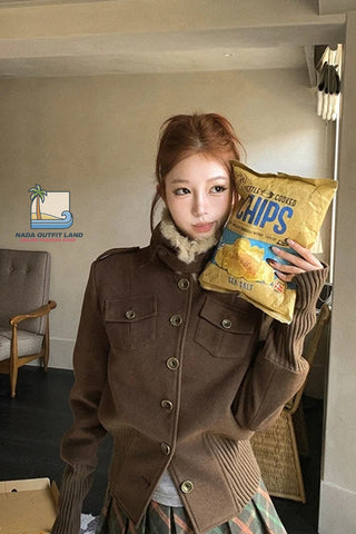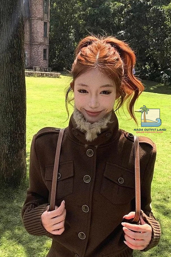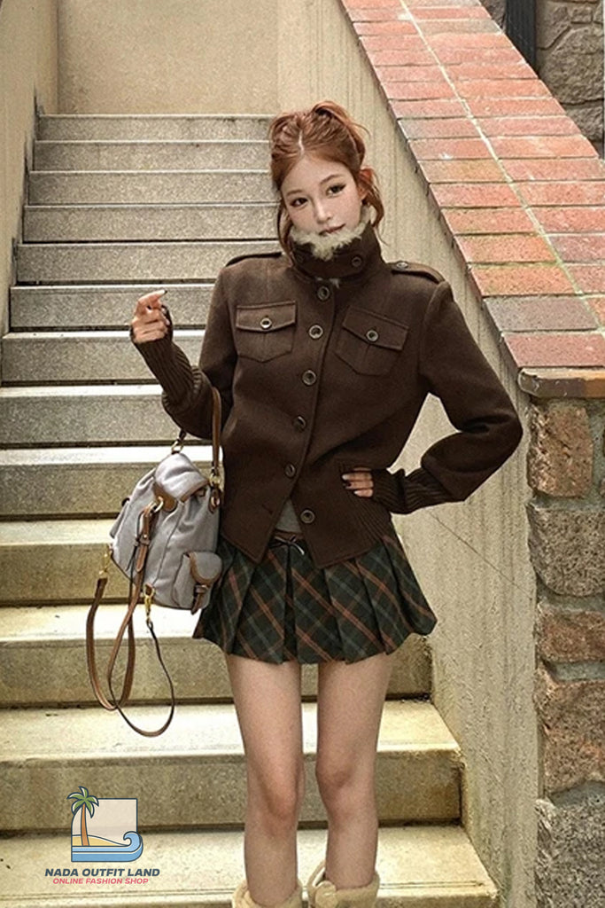 Buy Long Sleeve Vintage Stand Collar Cropped Brown Coat Jacket from Nada Outfit Land for your outfit of the day. This item is in stock and ready to order. World Wide Shipping Service. Check our Shop for more trendy fashion.