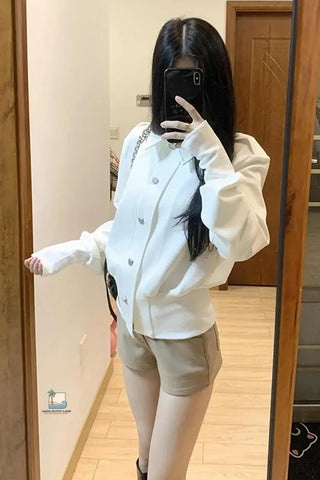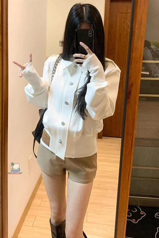 The classic white color makes this jacket incredibly versatile and easy to style. White outerwear adds brightness and refinement to any outfit, allowing you to create fresh and fashionable looks for multiple occasions.