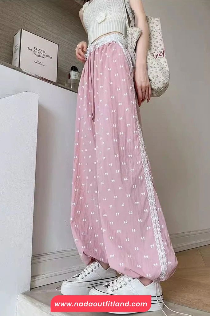 Buy Loose Bow Pattern Printed Lace Blended Jogger Sweatpants from Nada Outfit Land for your outfit of the day. This item is in stock and ready to order. World Wide Shipping Service. Check our Shop for more trendy fashion.