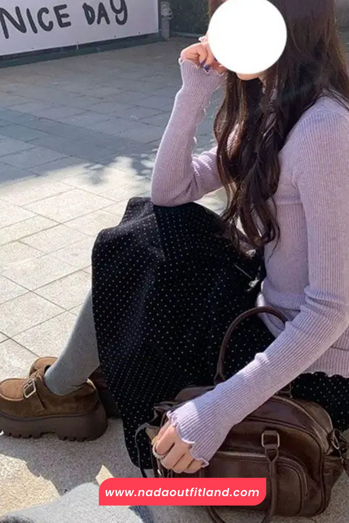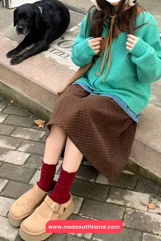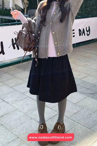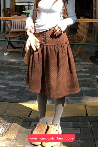 Buy Loose Dots Pattern Corduroy A-Line Skirts from Nada Outfit Land for your outfit of the day. This item is in stock and ready to order. World Wide Shipping Service. Check our Shop for more trendy fashion.