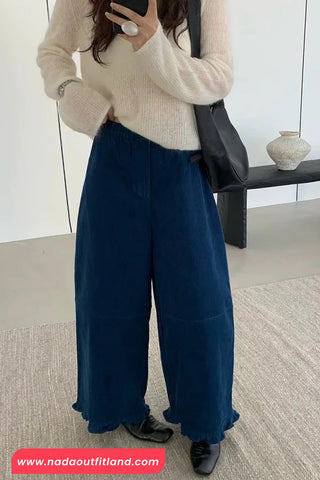 Buy Loose Elastic Waist Ruffled Corduroy Pants from Nada Outfit Land for your outfit of the day. This item is in stock and ready to order. World Wide Shipping Service. Check our Shop for more trendy fashion.