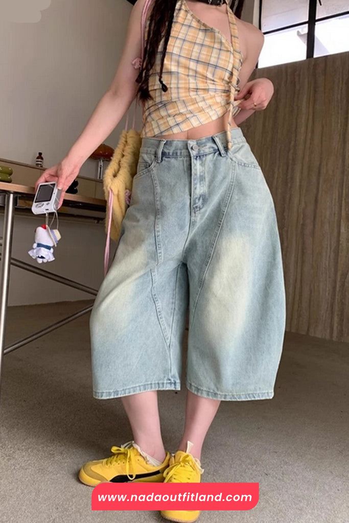 Buy Loose Knee Length Casual Denim Shorts from Nada Outfit Land for your outfit of the day. This item is in stock and ready to order. World Wide Shipping Service. Check our Shop for more trendy fashion.