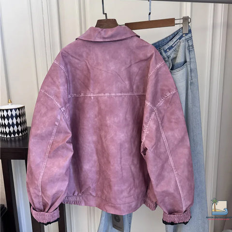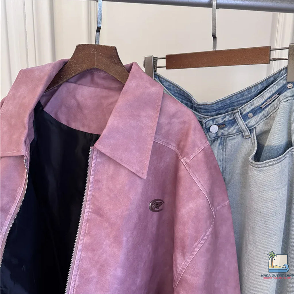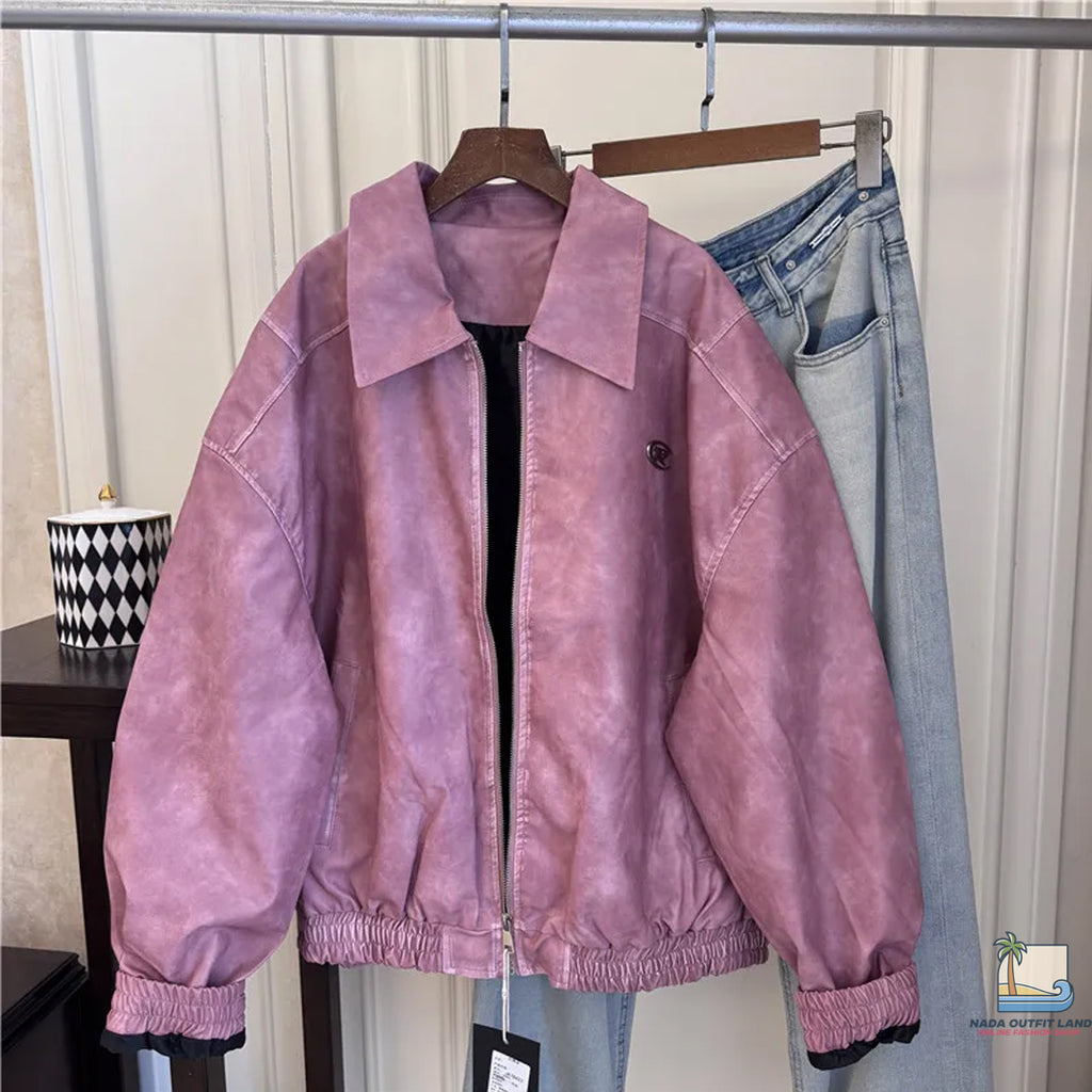 The Loose Lapel Collar Pink Matte Zipper Jacket pairs effortlessly with denim jeans, mini skirts, casual trousers, or dresses, making it a versatile piece suitable for multiple occasions. Whether you're heading out for a casual day, running errands, meeting friends, or creating a trendy streetwear look, this jacket delivers comfort, style, and versatility.