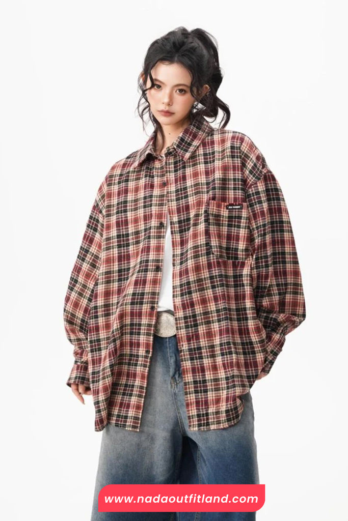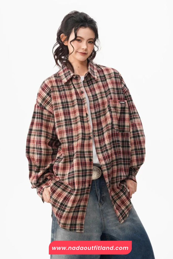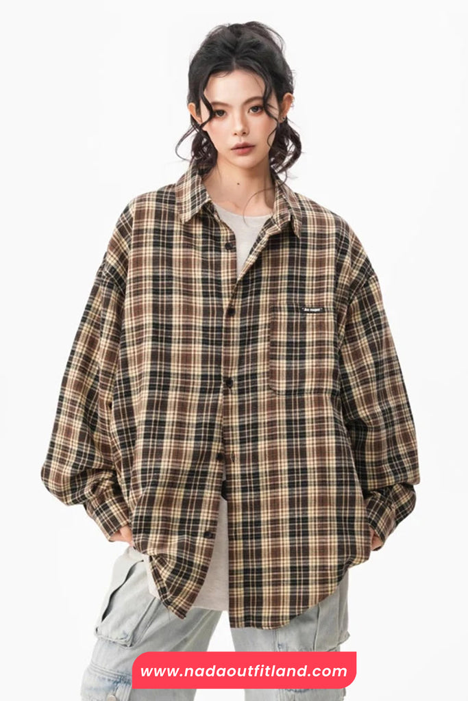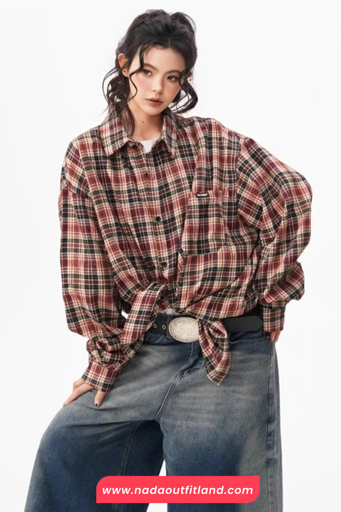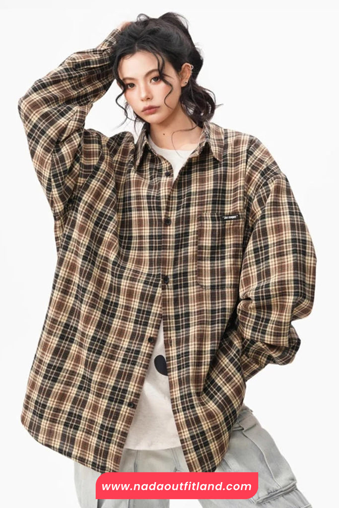 Buy Loose Long Sleeve Retro Plaid Pattern Blouse Shirt from Nada Outfit Land for your outfit of the day. This item is in stock and ready to order. World Wide Shipping Service. Check our Shop for more trendy fashion.