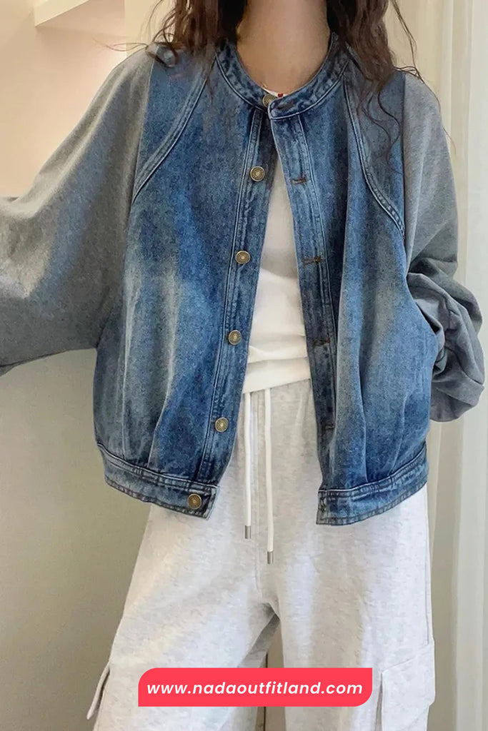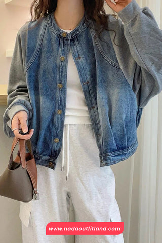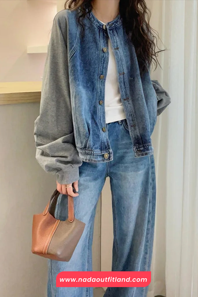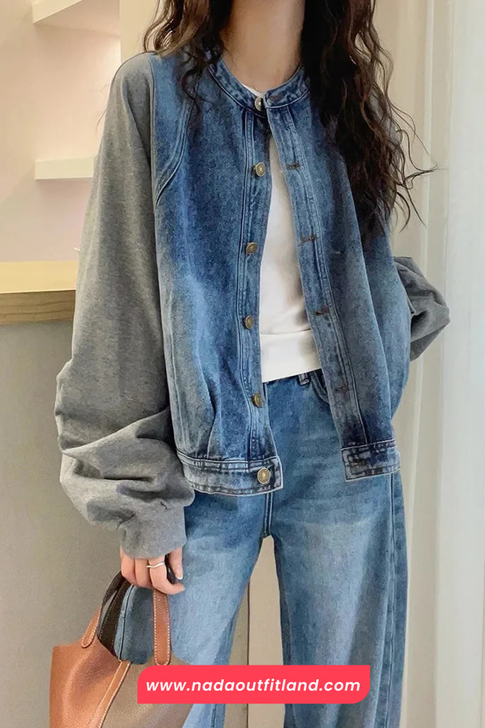Buy Loose O-Neck Denim Patchwork Sweatshirt from Nada Outfit Land for your outfit of the day. This item is in stock and ready to order. World Wide Shipping Service. Check our Shop for more trendy fashion.
