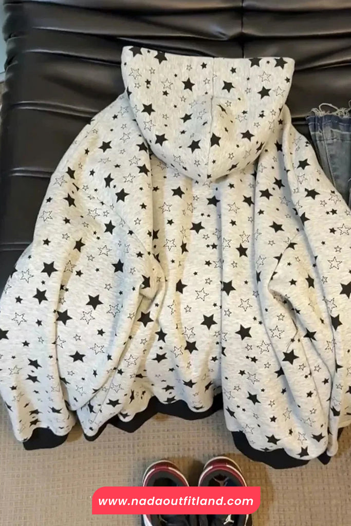 Buy Loose Retro Stars Pattern Zipper Hoodie from Nada Outfit Land for your outfit of the day. This item is in stock and ready to order. World Wide Shipping Service. Check our Shop for more trendy fashion.